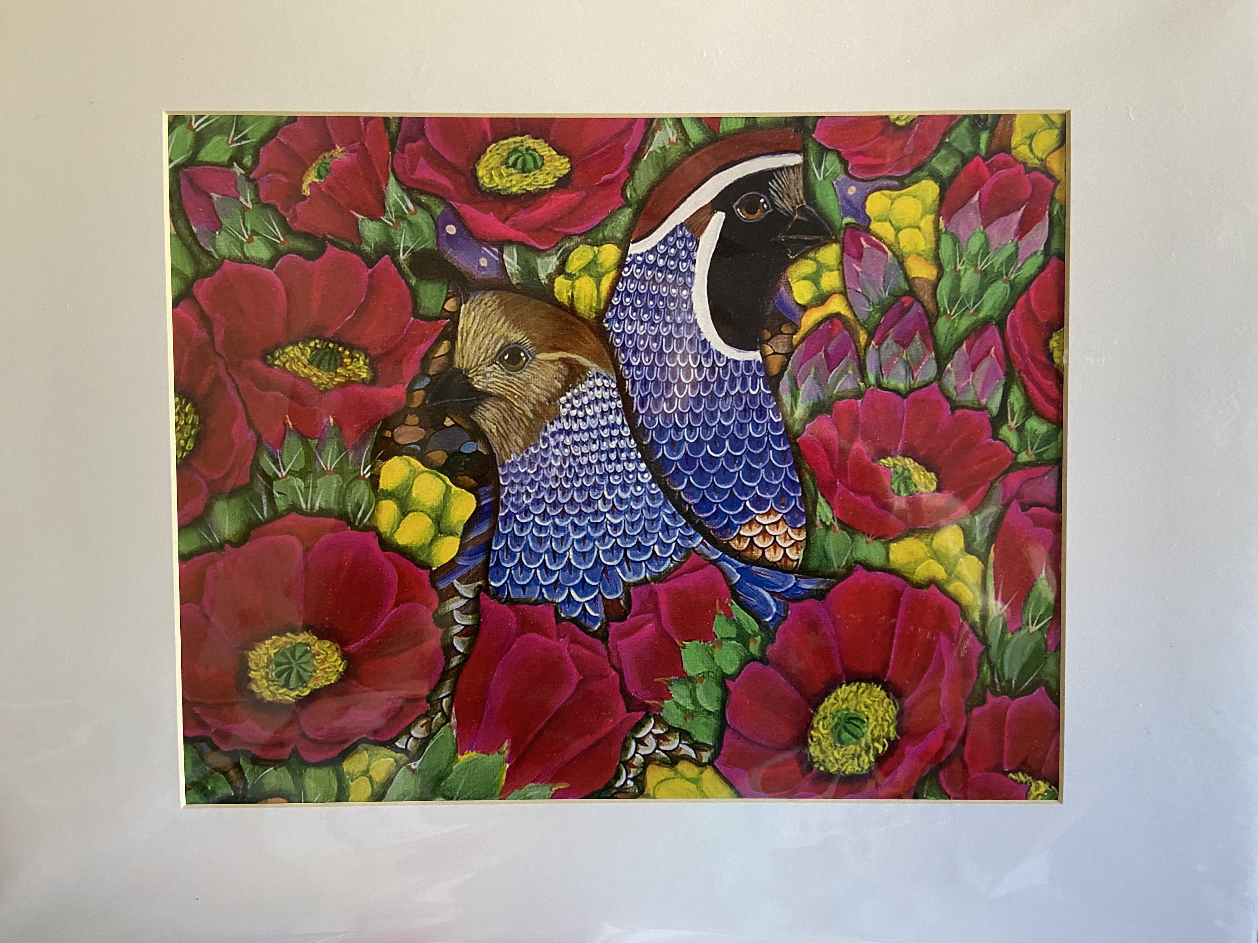 As you may know, we live in the country. One of my great joys is watching the wildlife in our yard. I gain the most pleasure from watching the large quail family come out to drink and eat the birdseed we put out every day. There is something so comforting about the coos and calls they make to each other. In fact, I won a screen print, the photo at the top of this post, of quail at last year’s Cochise Writer’s Celebration. I’m sorry the artist didn’t sign it because I’d like to give him or her credit. In any case, I love having it in my office.